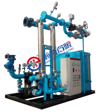 一次管網的熱煤經溫度控制閥(智能型)進入換熱器,根據二次網出口溫度傳感器反饋回來的信號來控制溫度控制閥的開啟程度從而控制熱煤的流量。如果熱媒為蒸汽,在換熱器出口配有疏水器和疏水泵,經疏水器或疏水泵出來的蒸汽冷凝水被回收到冷凝水箱作為系統的補水用或用疏水泵加壓后直接進入二次網的供水系統。根據用戶的要求冷凝水也可以回收利用。